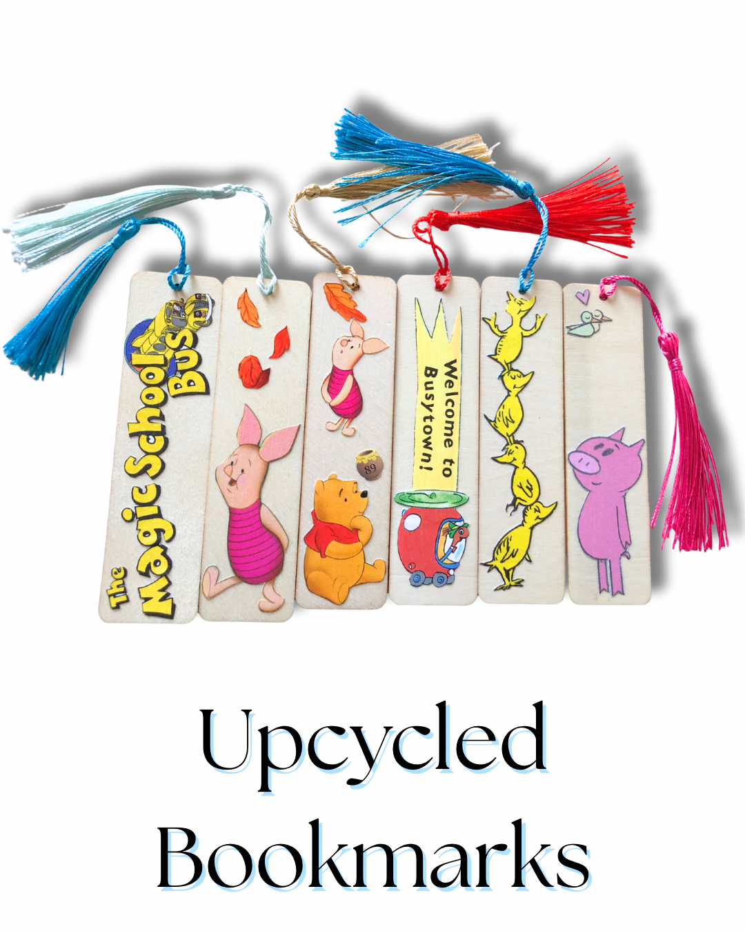 Save your place and a book with our upcycled bookmarks. When a book has been damaged and no longer fit for reading it gets a new life as handmade book marks and the scraps get added to our compost…keeping books out of the landfill.