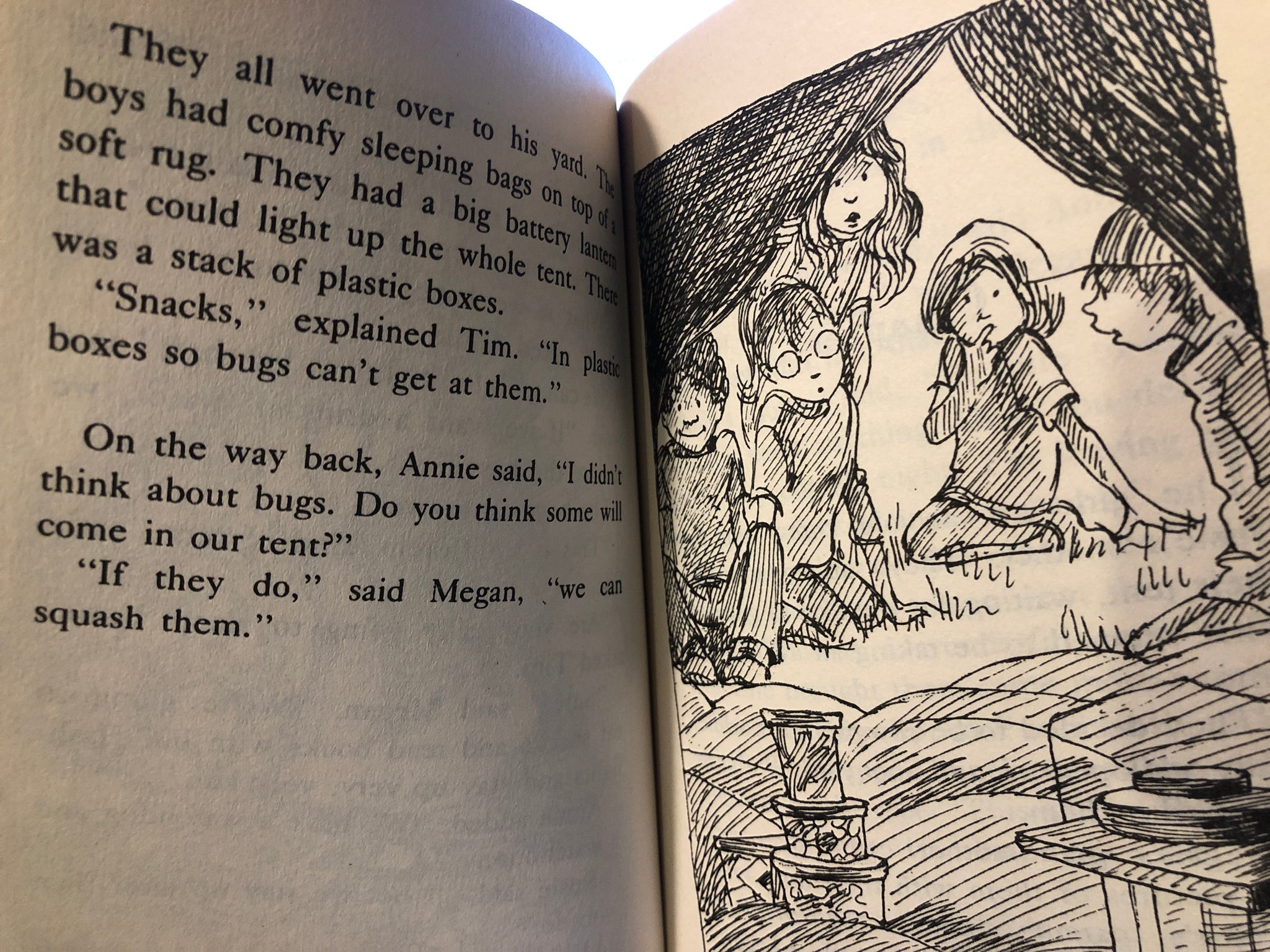 As the boys and the girls plan two separate outdoors sleepover, complete with tents and flashlights and attacking mosquitoes, they wager on who will last outside the longest.